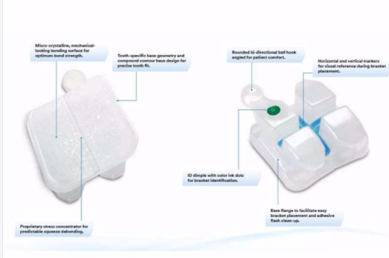 – Vùng buộc dưới cánh mắc cài cho phép buộc kép/đôi để linh hoạt trong điều trị