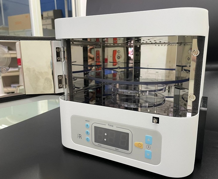 Máy LQ-BOX III MỚI với buồng lớn nhất, có thể làm cứng tất cả các loại vật liệu nhựa composite nha khoa quang trùng hợp, sử dụng 42 đèn LED mang lại hiệu suất năng lượng cao cho quá trình trùng hợp. Ánh sáng chiếu 360° từ mọi hướng.