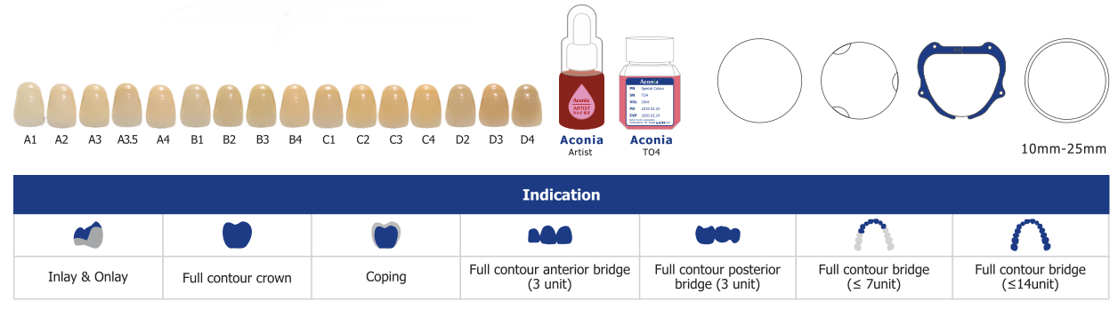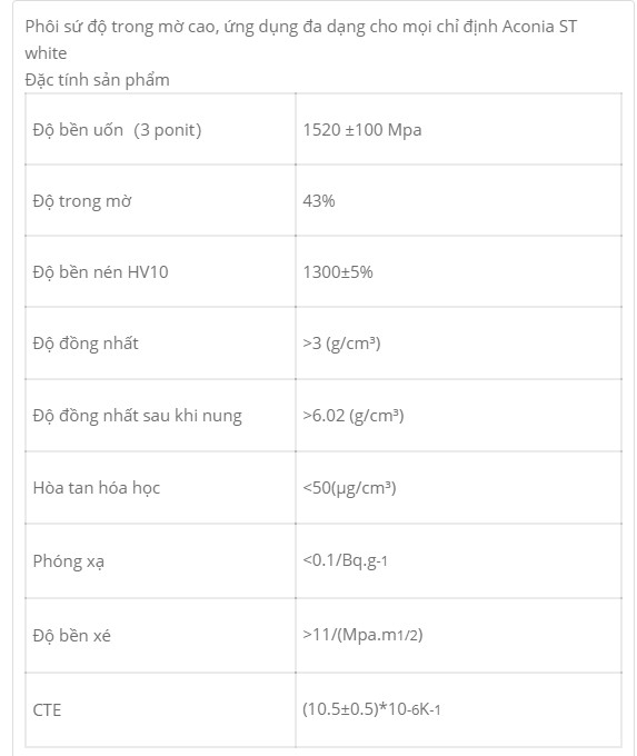- Sẵn có màu trắng và màu nhuộm sẵn từ A-D theo bảng so màu Vita
